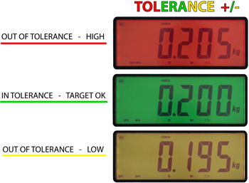 The color of the backlight, in the tolerance control function, automatically changes depending on the weight.